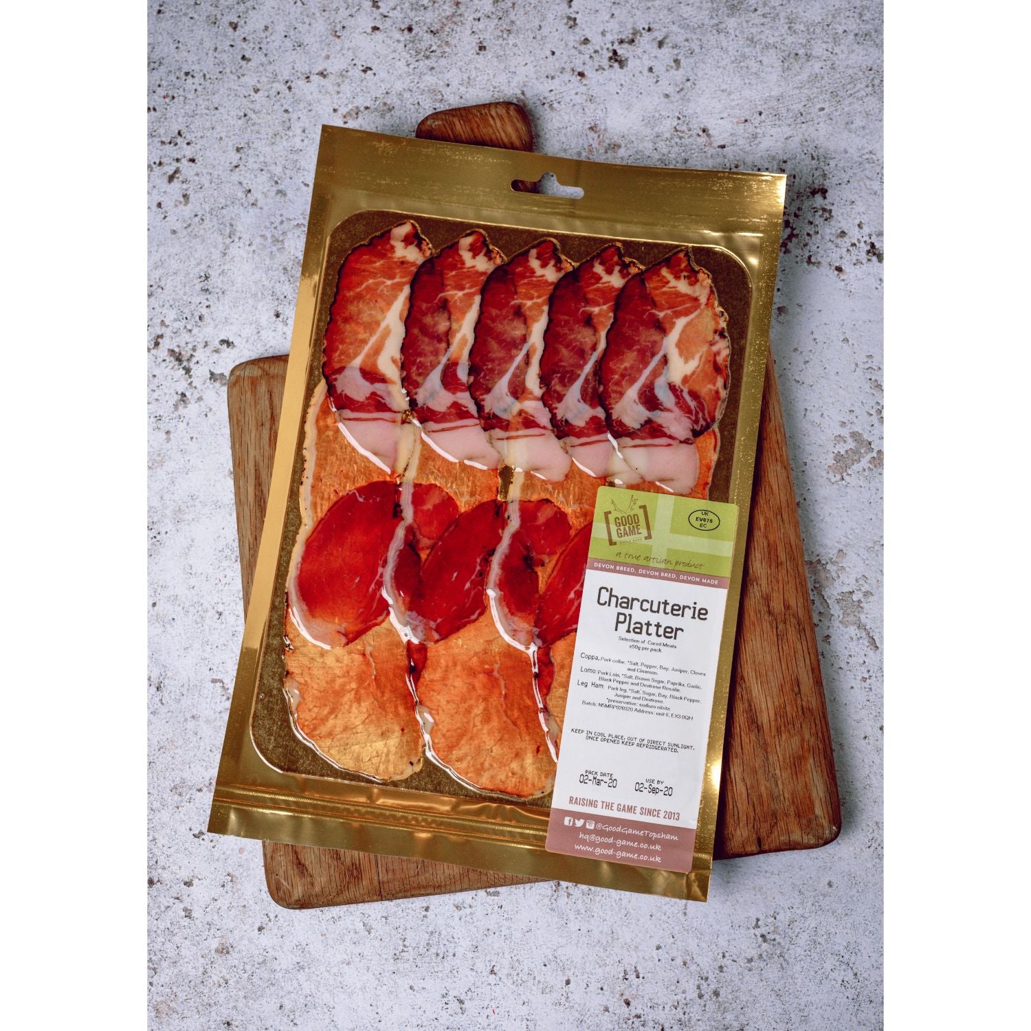 Description: A selection of ready slices meats to make your own charcuterie platter. We suggest you serve it at room temperature with some pickles, bread, olives and some great British cheeses.